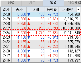 시총 : 1,257억, 거래량 : 전 거래일보다 약 40배, 거래대금 119억 원 / 흑자