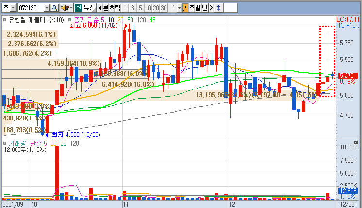 어제 유엔젤 경우는 딱 상방 VI에 바로 하방 VI로 3분 안에 10%의 시세차익을 주었습니다.