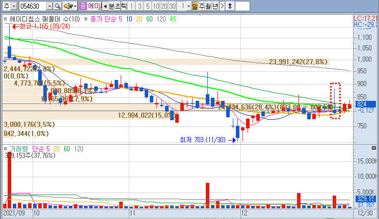 시총 : 840억, 거래량 : 전 거래일보다 약 14배, 거래대금 21억원 / 흑자