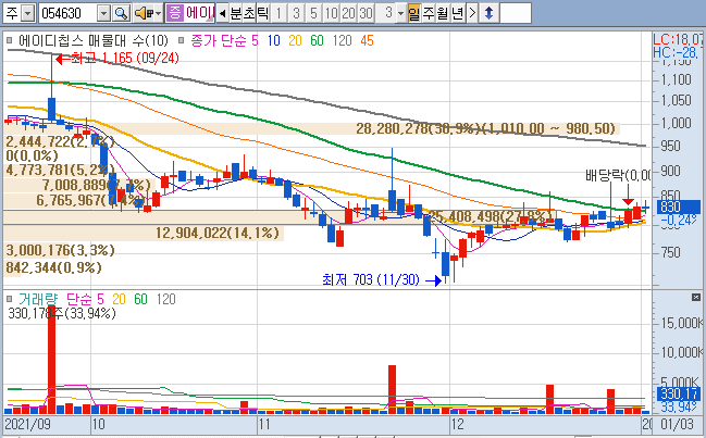 저번주 950원 까지 급등할 때 과욕으로 정리를 못해서 물려 있네요.