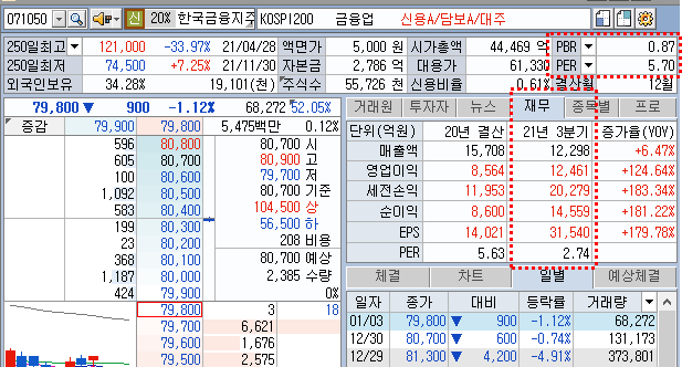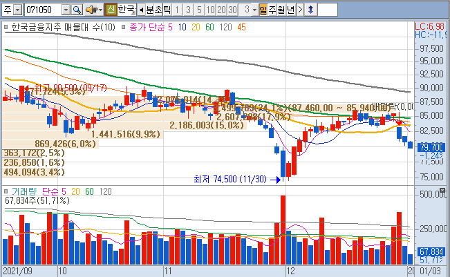 한국금융지주는 너무 아쉽습니다.