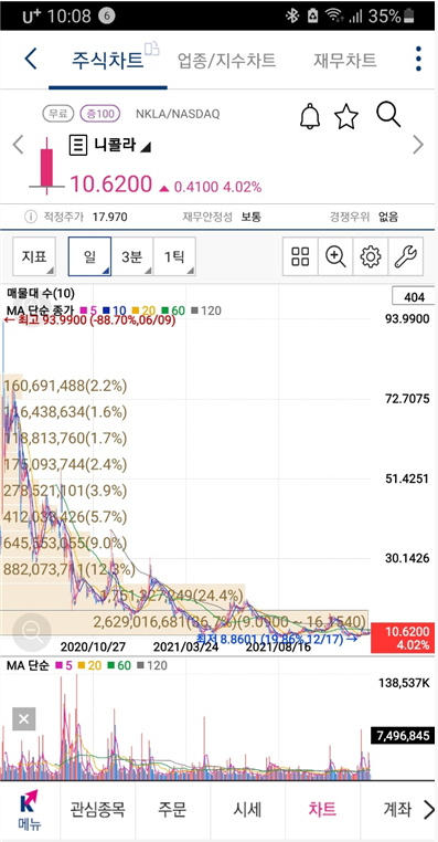 [제2의 테슬라로 나온 종목이 있었습니다. 이름도 가물해서 검색해보니... 아 니콜라였습니다.]