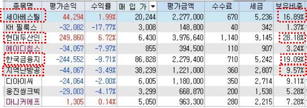 그 외엔 현대두산인프라코어가 유증 물량이 더해지면서
