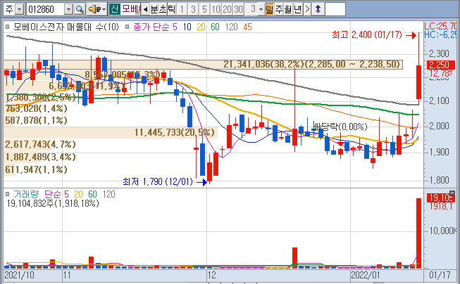 모베이스전자 역시 전기차지만 윤석열 관련주의 리스크의 불확실성이 상쇄되면서