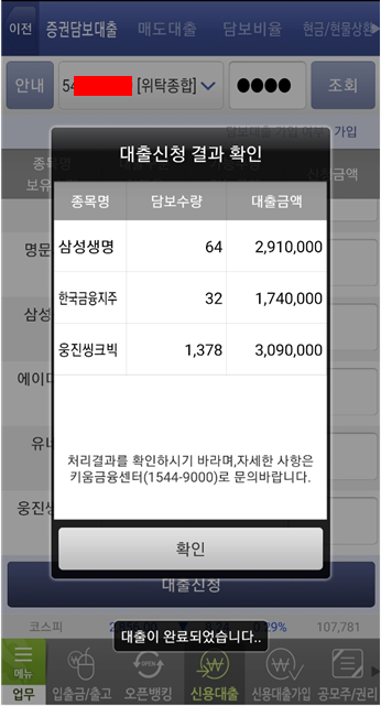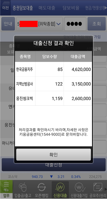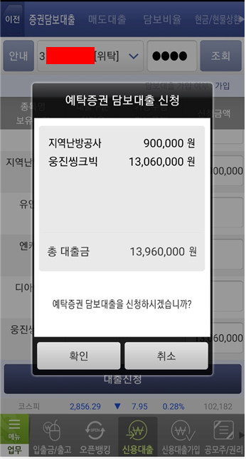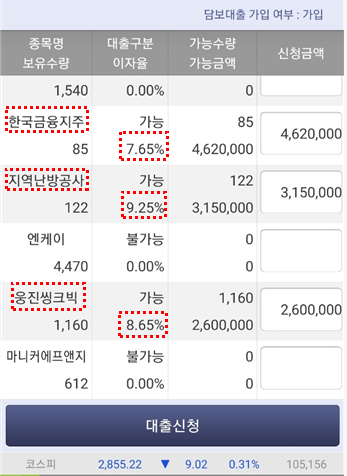 그래도 많은 보유종목 중 시가총액이 크고 재무구조가 좋은 종목만이 담보대출이 되었습니다.