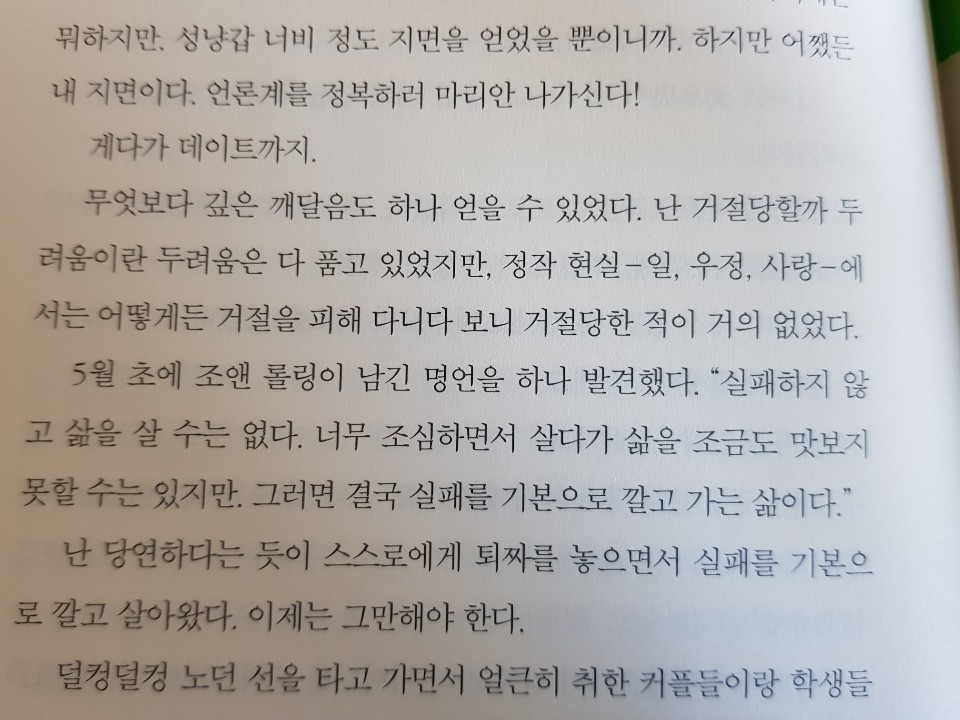 난 당연하다는 듯이 스스로에게 퇴짜를 놓으면서 실패를 기본으로 깔고 살아왔다.