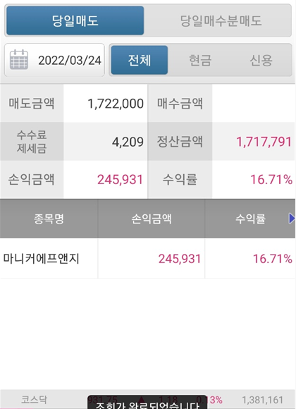 유증시 이익이 났었음에도 워낙 장이 좋았던 터라 수익이 손실이 될 때까지 가지고 있었네요.