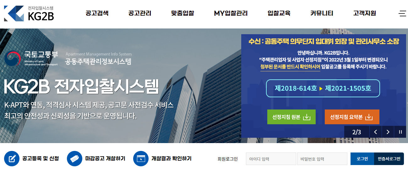 공동주택 입찰 가격은 --> KG2B 전자입찰시스템 기존 업체들 기준들이나 가격 확인