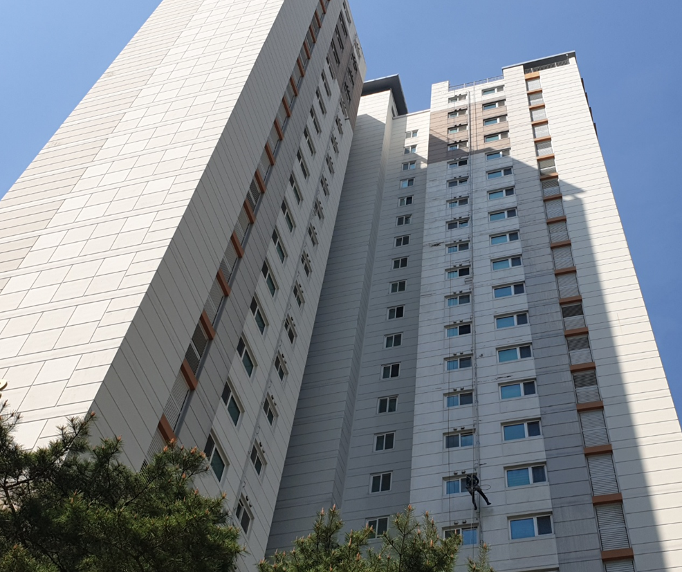 이 공정 중 가장 중요한 공정은 기초가 되는 외벽 고압세척입니다.