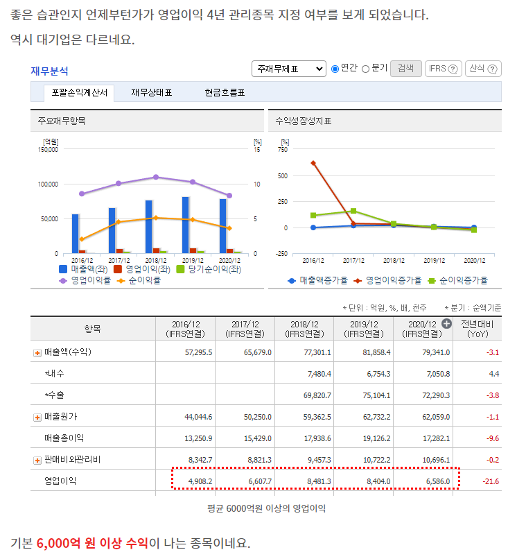 당시 재무제표에 평균 6,000억 원 이상의 영업이익.