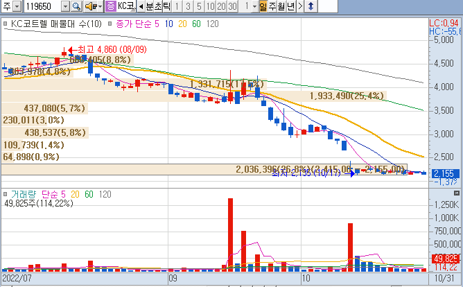 KC코트렐은 4년전에 5% 정도 수익 준 종목으로