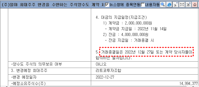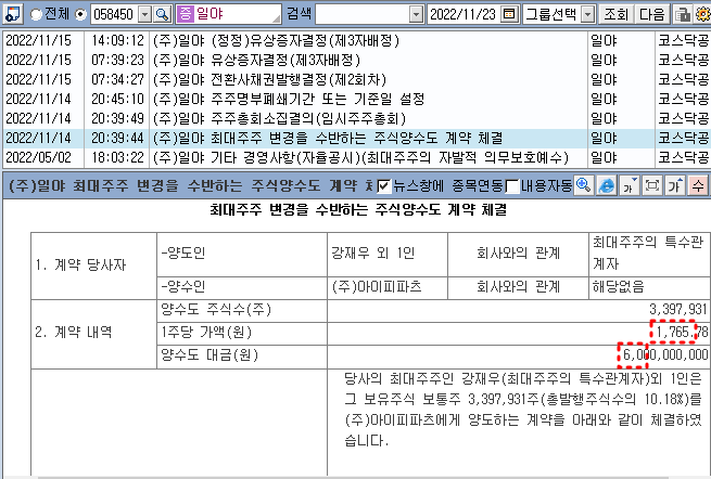 1,765원에 60억원 , 계약 체결일 22.11.14일