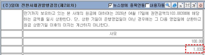 전환 가액 1,032원 , 만기이자 3~4% ,