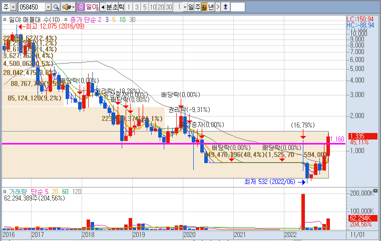 2020년 유증 이후 몇 차례 3자 유증 950원대...