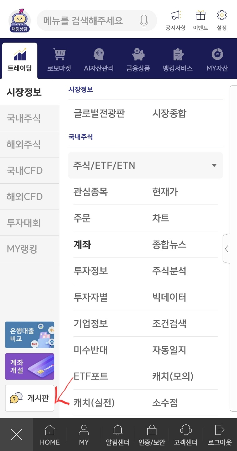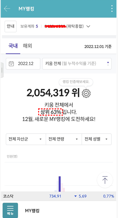 중간에 마이랭킹 에서 계좌 선택