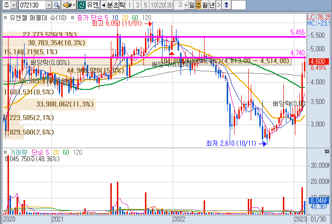 담 저항선은 5500원 선이니 한번 봅시다.