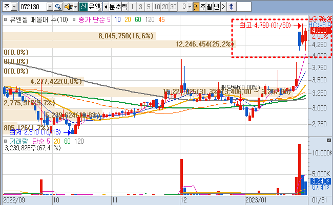 오전에 거래량 50만 주 정도로.