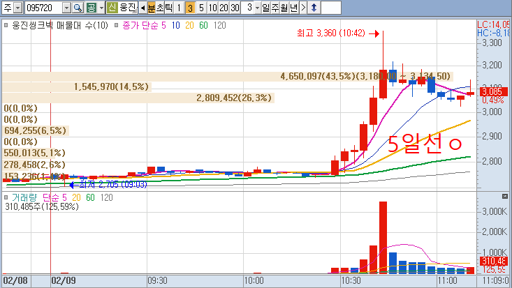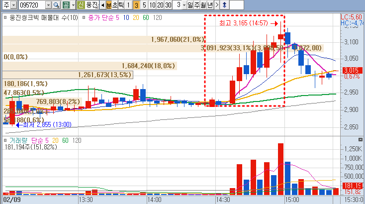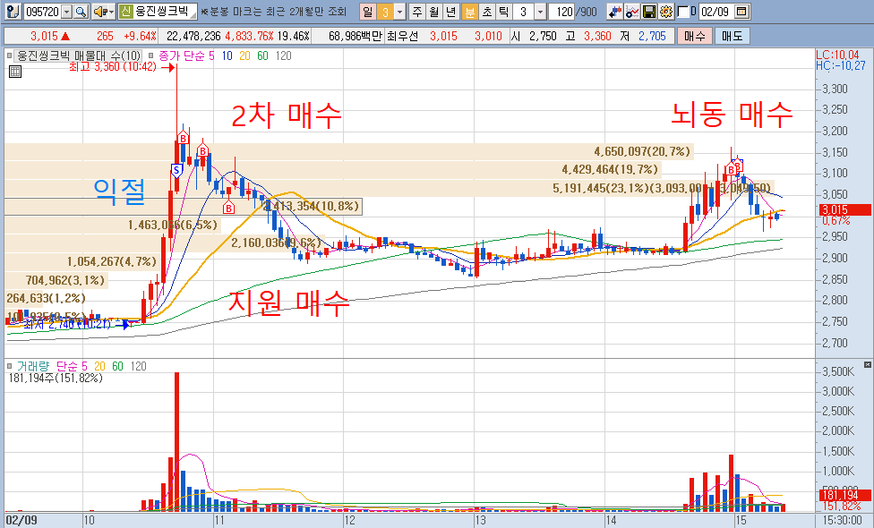웅진 상한가 가는 것을 보고 매매한 것이 패착이었네요.