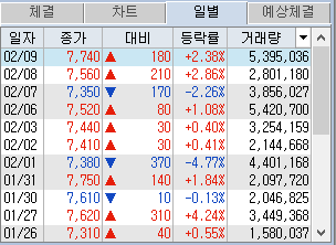 7300원 정도 바닥을 잡고