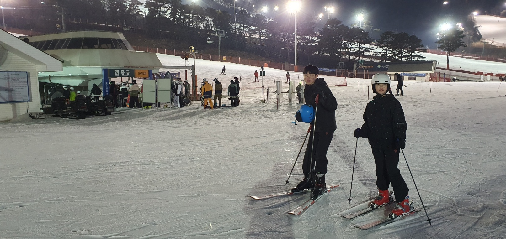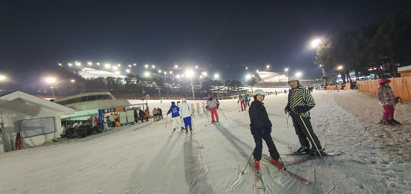 저녁 먹고 야간 스키 1시간 더 함.