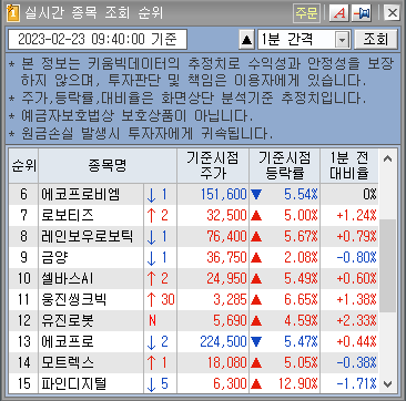 2. 실시간 종목 조회 순위 : 랭킹 순위 내릴 때
