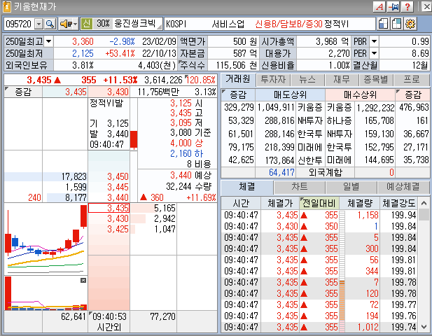 웅진씽크빅이 며칠부터 상당히 좋은 흐름을 보여