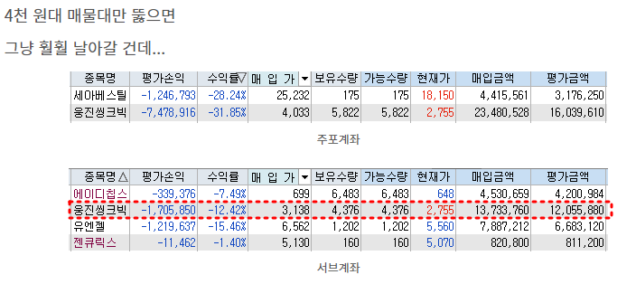 손절 기준을 지키지 못한 웅진씽크빅은 순식간에