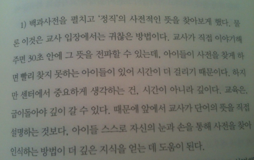 아이들 스스로 자신의 눈과 손을 통해 사전을 찾아 인식하는 방법이 더 깊은 지식을 얻는 데 도움이 된다.