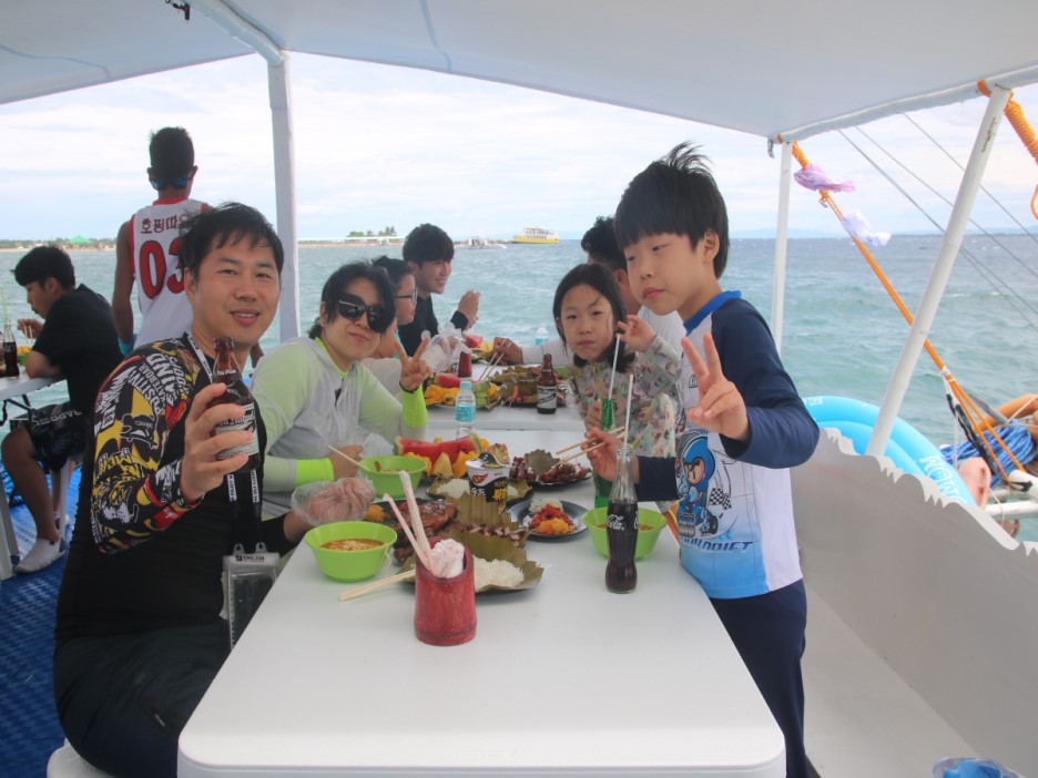 호핑 따요 식구들이 가는 배에서도 재미있게 해 주고 애가 어려서 걱정이 됐는데 전담 마크맨을 둬서 더 안심이 됐다.