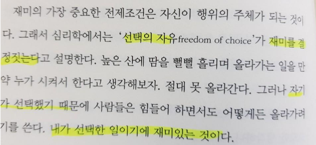 그래서 심리학에서는 [선택의 자유]가 재미를 결정짓는다고 설명한다.