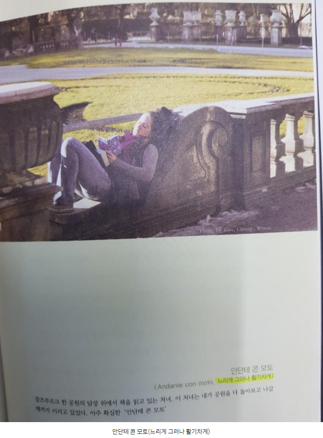 [잘츠부르크 한 공원의 담장 위에서 책을 읽고 있는 처녀, 이 처녀는 내가 공원을 다 돌아보고 나갈 때까지 이러고 있었다. 아주 확실한 [안단테 콘 모토]]