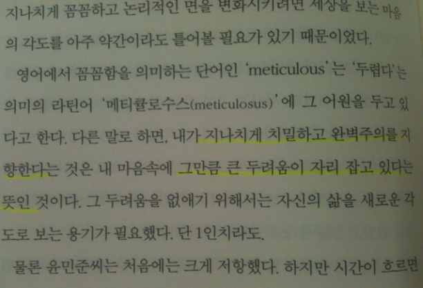 꼼꼼함 이란 마음속에 큰 두려움이 자리 잡고 있어서 지나치게 완벽주의를 지향한다는 것.