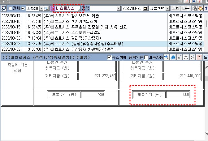2023.03.07 - [재테크/추천 성공 & 실패] - 권리락 이후 유상증자의 흐름 [38-2. 비츠로시스 성공]