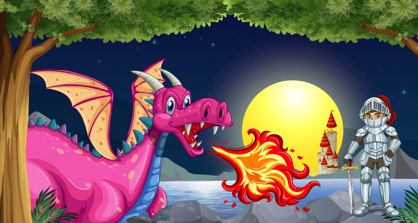기사는 용을 죽이려고 검을 뺏다.