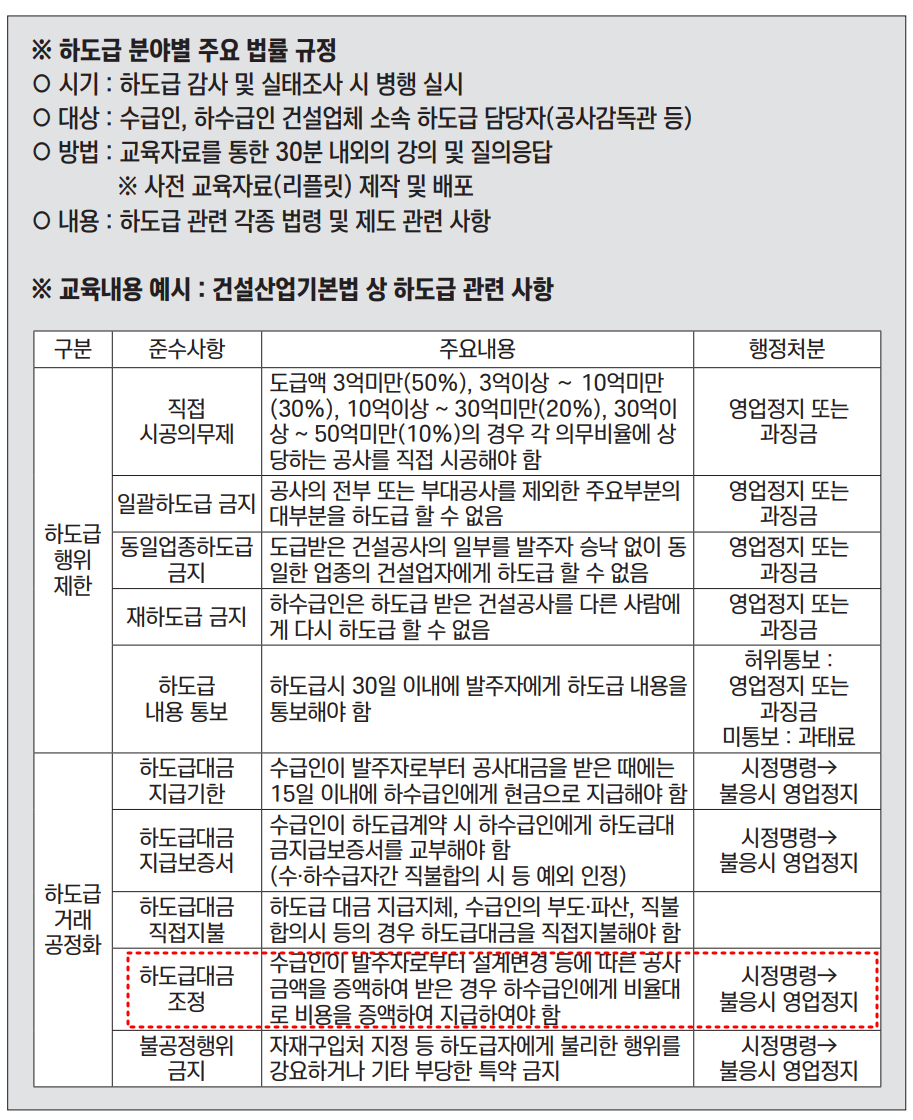 먼저 그 내용이 가장 잘 되어 있는 서울시 하도급 관리 매뉴얼을 참고하시기 바랍니다.