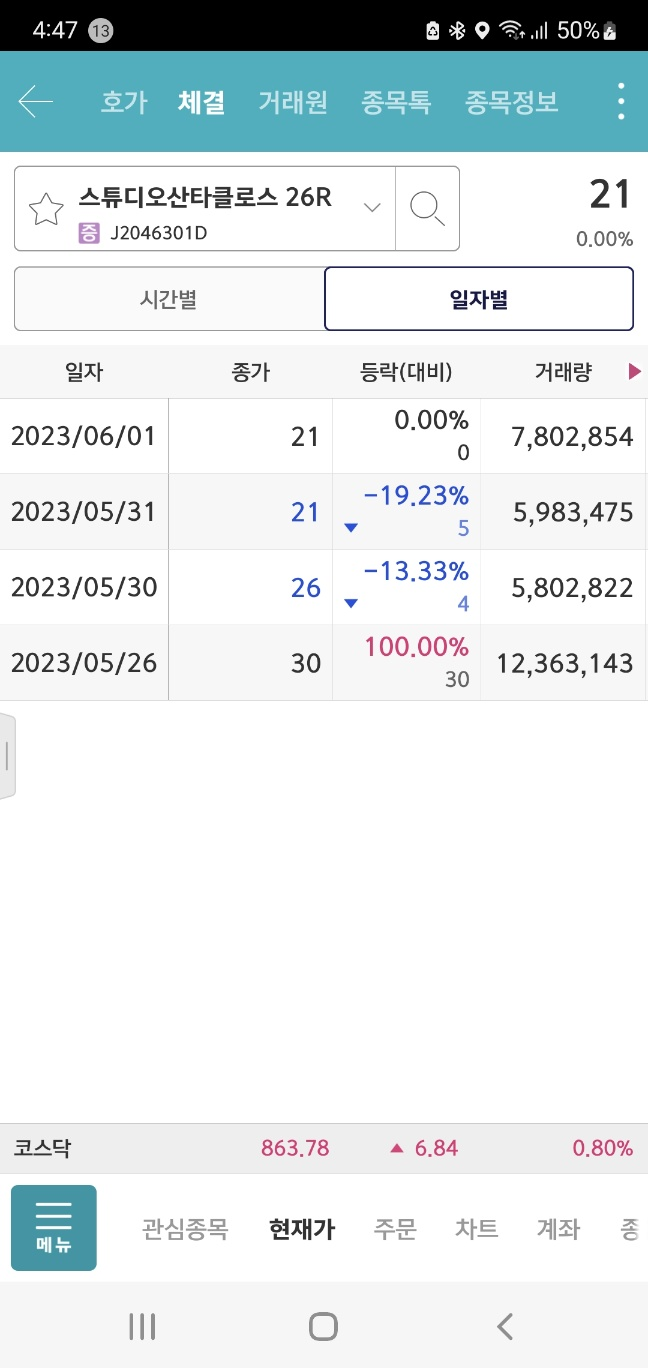 | 41-3. 이젠 신주인수권 거래 기록도...[스튜디오산타클로스 26R] (0) | 2023.06.05 |