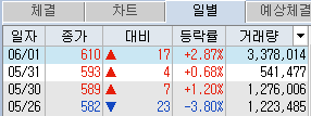 구주 4일간 6백4십만주 가량 거래 = 가격 590원