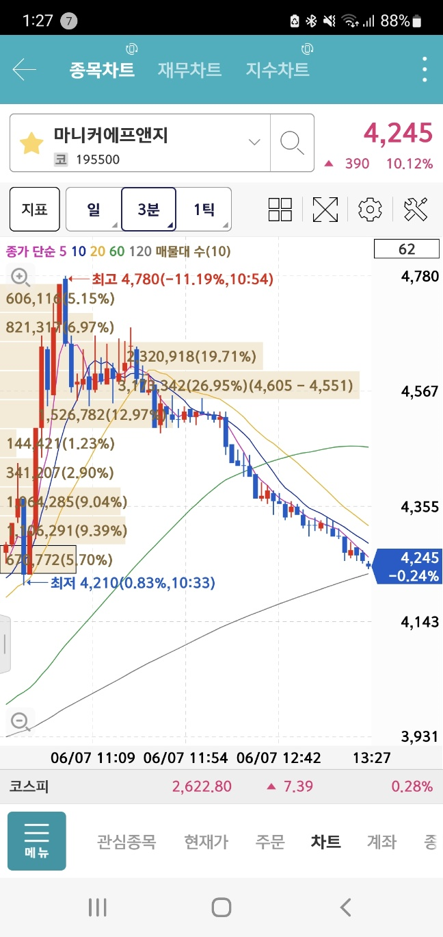 11시 이후 계속 하락하기를 끝으로 종가 11%로 마감을 했습니다