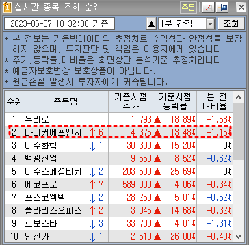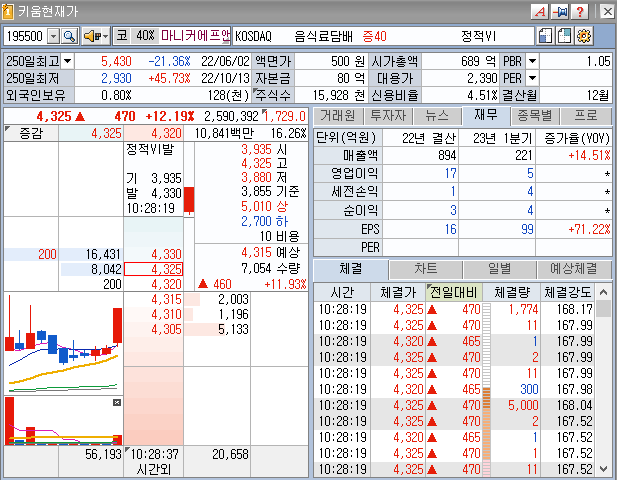 마니커에프엔지가 어설픈 주가 아닌데...