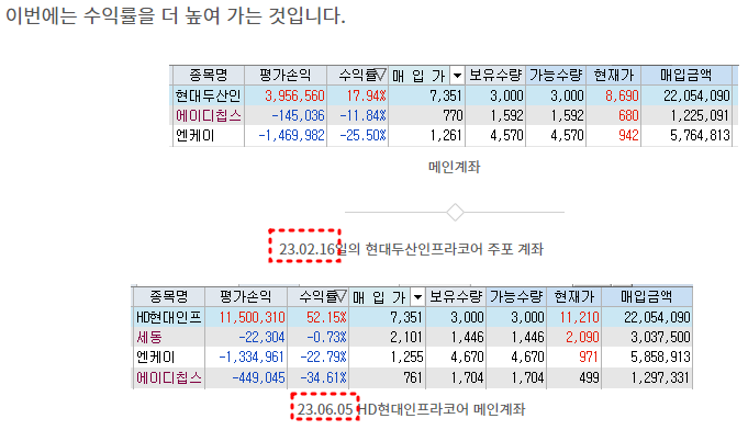 2023.06.05 - [재테크/추천 성공 & 실패] - 36-10. 올해 최고의 대물 [HD현대인프라코어 성공]