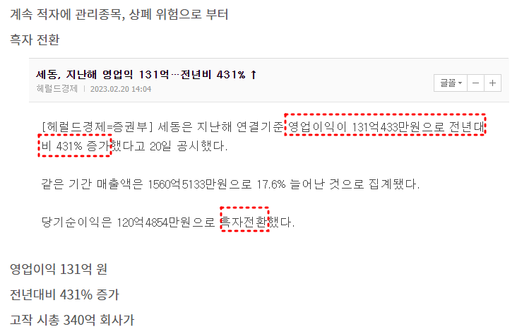 2월에 22년 124억 영업이익 때도