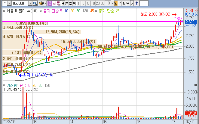 현재 나쁘지 않은 흐름을 보이고 있는 세동입니다.