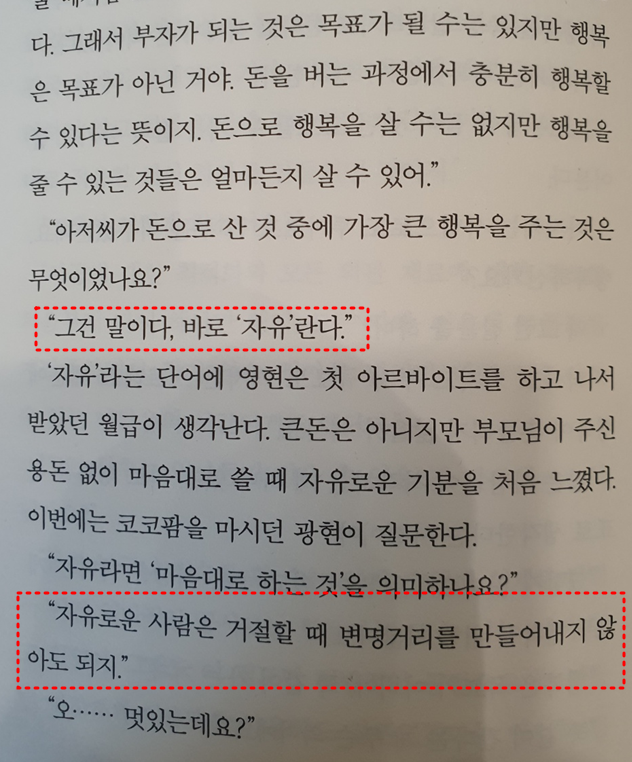 아저씨가 돈으로 산 것 중에 가장 큰 행복을 주는 것이 무엇이었나요?