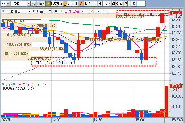 장 막판 동시호가를 10분 두고 4.7%로 버벅되던 주가는 5.48%의 종가로 마감되었습니다.