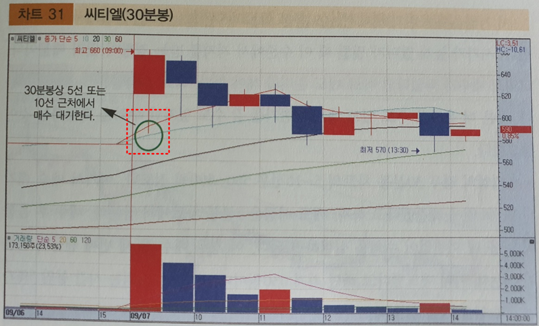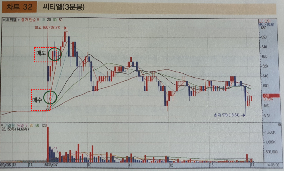 - 매도 포인트는 5일선을 이탈하는 시점이다.