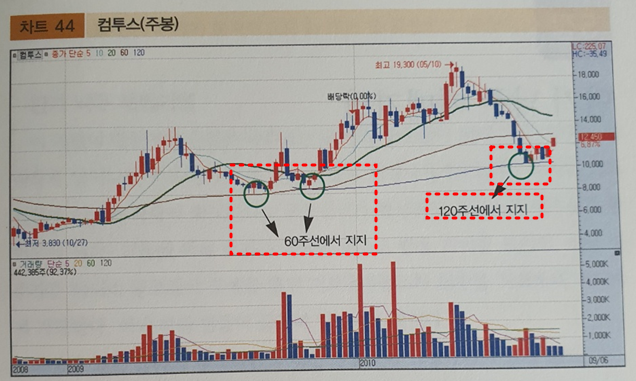 좋은 회사 급락 이후 주봉상 60일, 120선 지지 여부