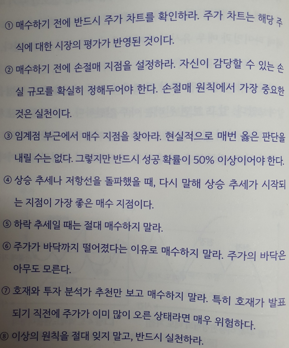 - 손절매 지점은 보통 10% 손실 이내로 설정하고 최대 20%가 넘지 않도록 해야 한다.