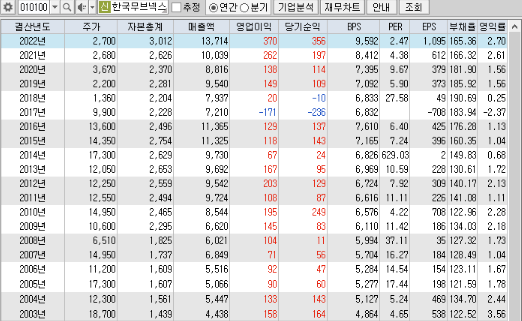 ◐ 시총 : 2293억 ◐ PER : 6.9 ◐ PBR : 0.7 ◐ 부채율 : 165 % ◐ 배당 : 2.5 ◐ 이익잉여금 : 2277 억