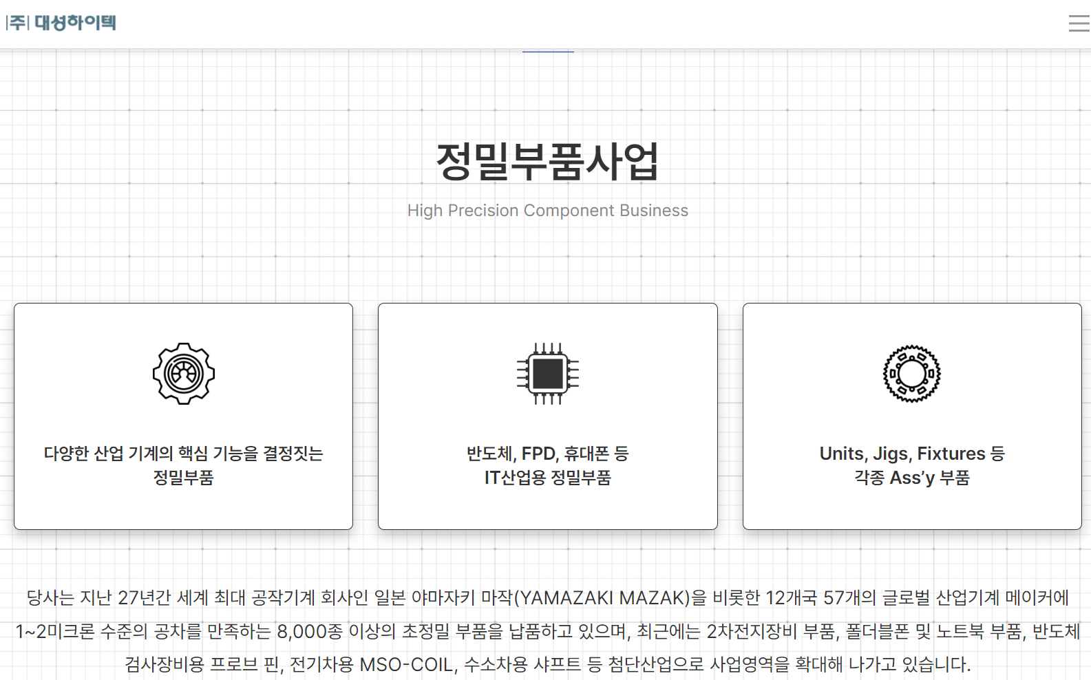 - 정밀 부품 생산 [ 2차전지, 전기,수소차, 방산장비] 여러 테마