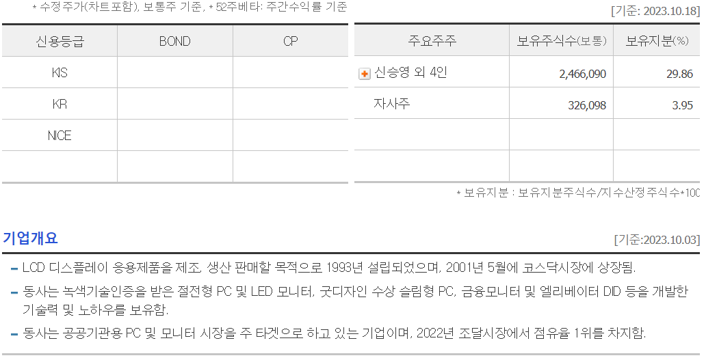 - 일체형 컴퓨터, 모니터 판매 재무상태 양호